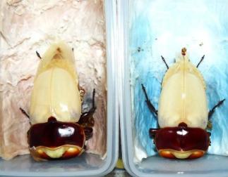 マニプール州のアンテとしたら、かなりでかい個体だったので心配していたのですが、 見たときには上羽も閉じていて、中羽も納まっていたので安心しました。 同時にサガルマタ27gも羽化途中で、両個体とも場所を移して並べた瞬間、 インパールの太さにびっくりしました。 サガルマタの27gの蛹は2個体羽化していて、83mmと84mmで羽化しています。 しかも極太血統なので十分に太いのですが、それよりひと回り太いです。 ① ② ①インパール31g(左)サガルマタ27g(右) ②サガルマタ(現在84,6mm・左)インパール31g(中)サガルマタ27g(右) サイズ的には大顎の長さが違うので、一緒ぐらいだと思いますが、 体が固まるのが楽しみです。^^ PR