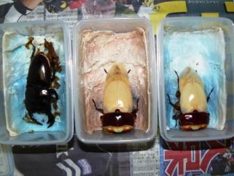 昨日ブリードルームを覘いた時、インパールの蛹(31g)が羽化途中でした。