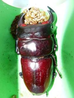 採集は諦めて、食後に寝てしまったのですが 10時過ぎに目が覚めて、子供に天気の具合を聞いたら 8時過ぎには雨があがった様だったので、疲労気味だったのですが、 調子が上がってきているので数か所だけチェックすることにしました。 現地は20℃前後で気温は低かったのですが、けっこう虫が付いていて パッと見だけでも十数頭のクワガタ・カブトが・・・・・ その中でも9mの付近にでかいおしりの影が・・・・・ ・・・・・今季最高サイズの74mm~ 久々のデカサイズ、感動というよりか一安心しました。 他も67mm~の太ノコ含めクワガタが20頭、カブト16頭(全♂) 盆も過ぎたのに大漁でした。 今年も2年前同様、9月までは採集が楽しめそうです。(^_^)v 74mmミヤマ 67mmノコ |